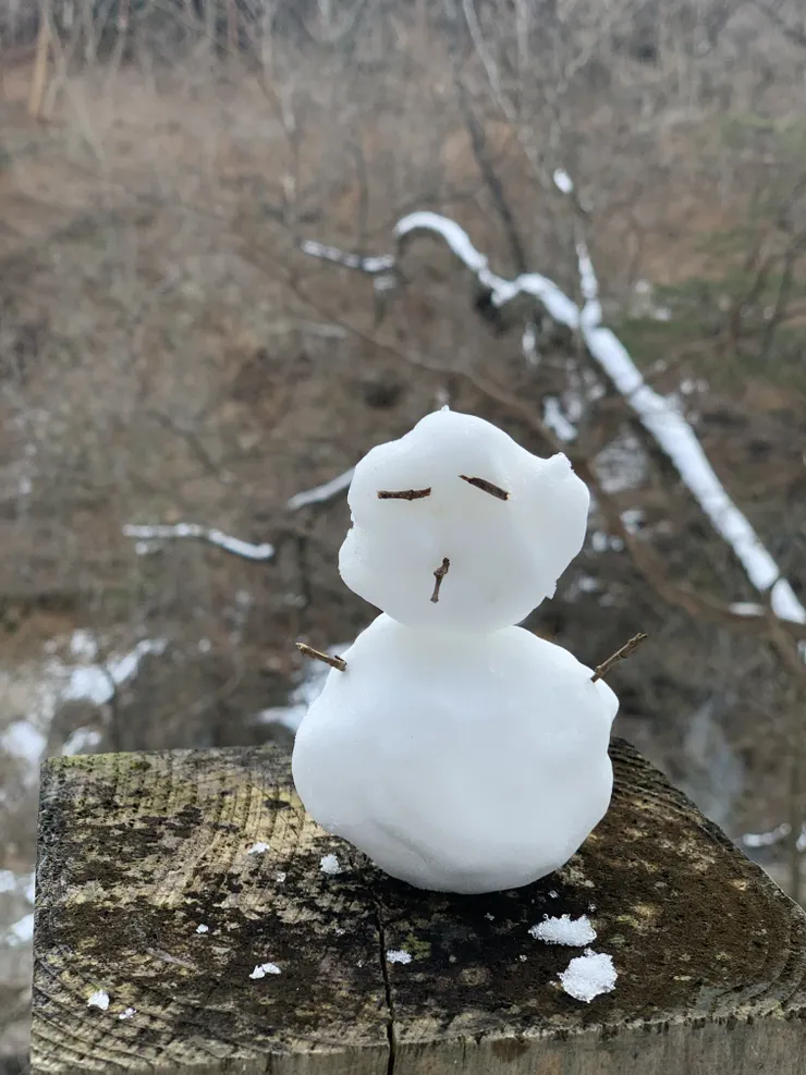 途中、キャンプ場を過ぎたくらいから、まだ雪が残っている箇所がチラホラ見受けられ、龍王峡に着いたら、もう雪景色。何年かぶりに雪だるま⛄️を作ってしまいました。