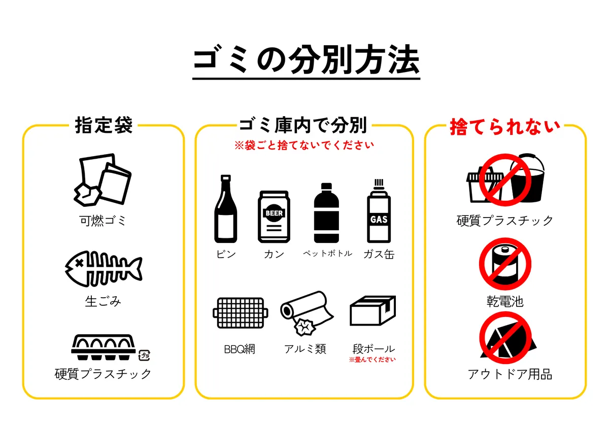 不燃ごみ・硬質プラスチック・乾電池・粗大ごみ・アウトドア用品