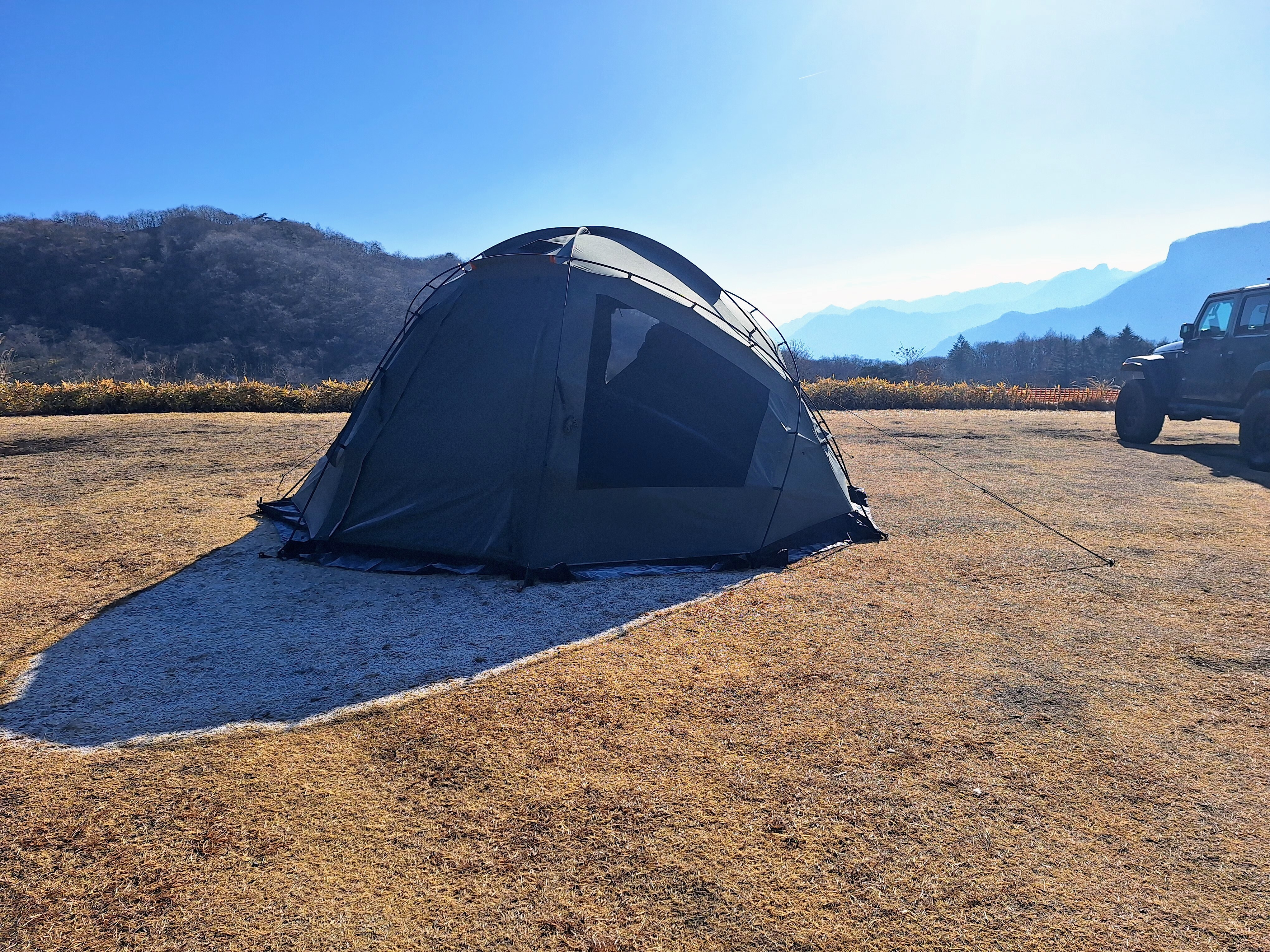 前のサイトはテント下に霜下りてました。撤収した後、幕張ってた場所が丸〜く霜下りてました💦