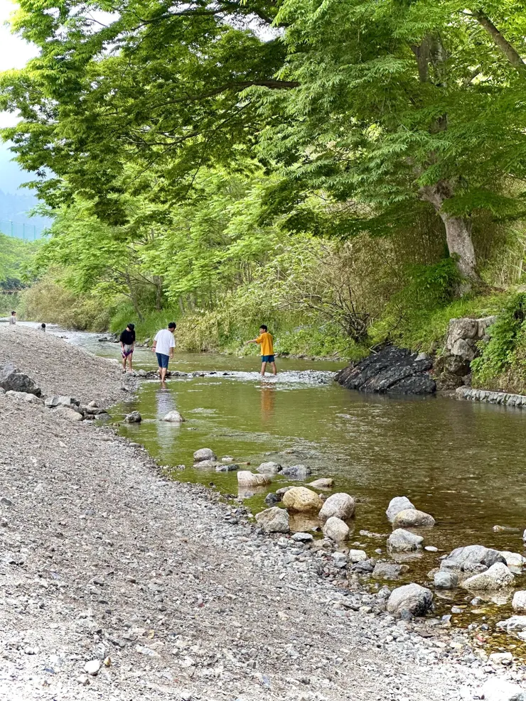 場内を流れる名栗川では、川遊びを楽しむお子さまたちの元気な姿が見られました