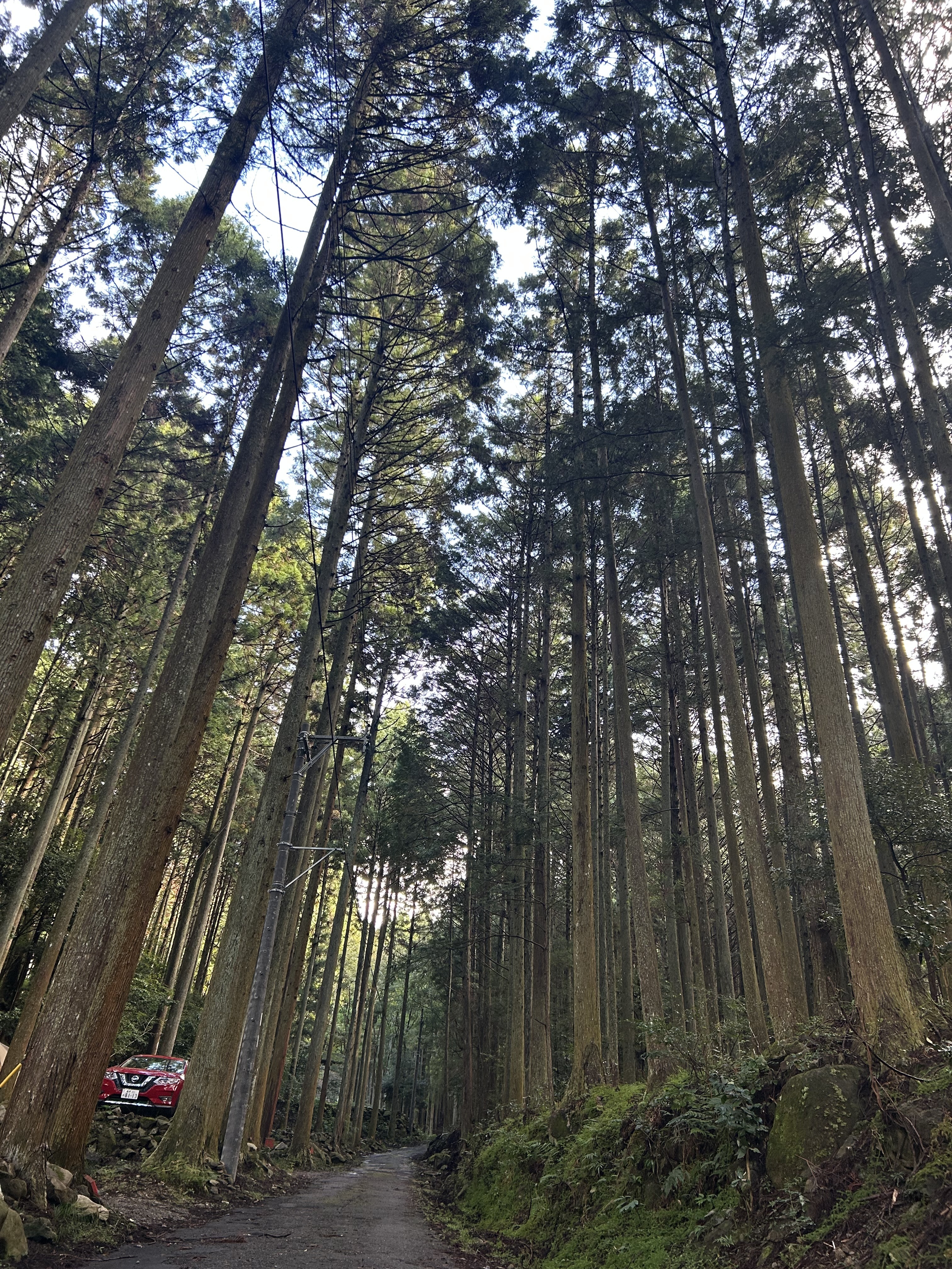 翌日は雨も上がり、散策していると沢の瀬やまっすぐ伸びる杉や沢山の自然を感じる事が出来ました。