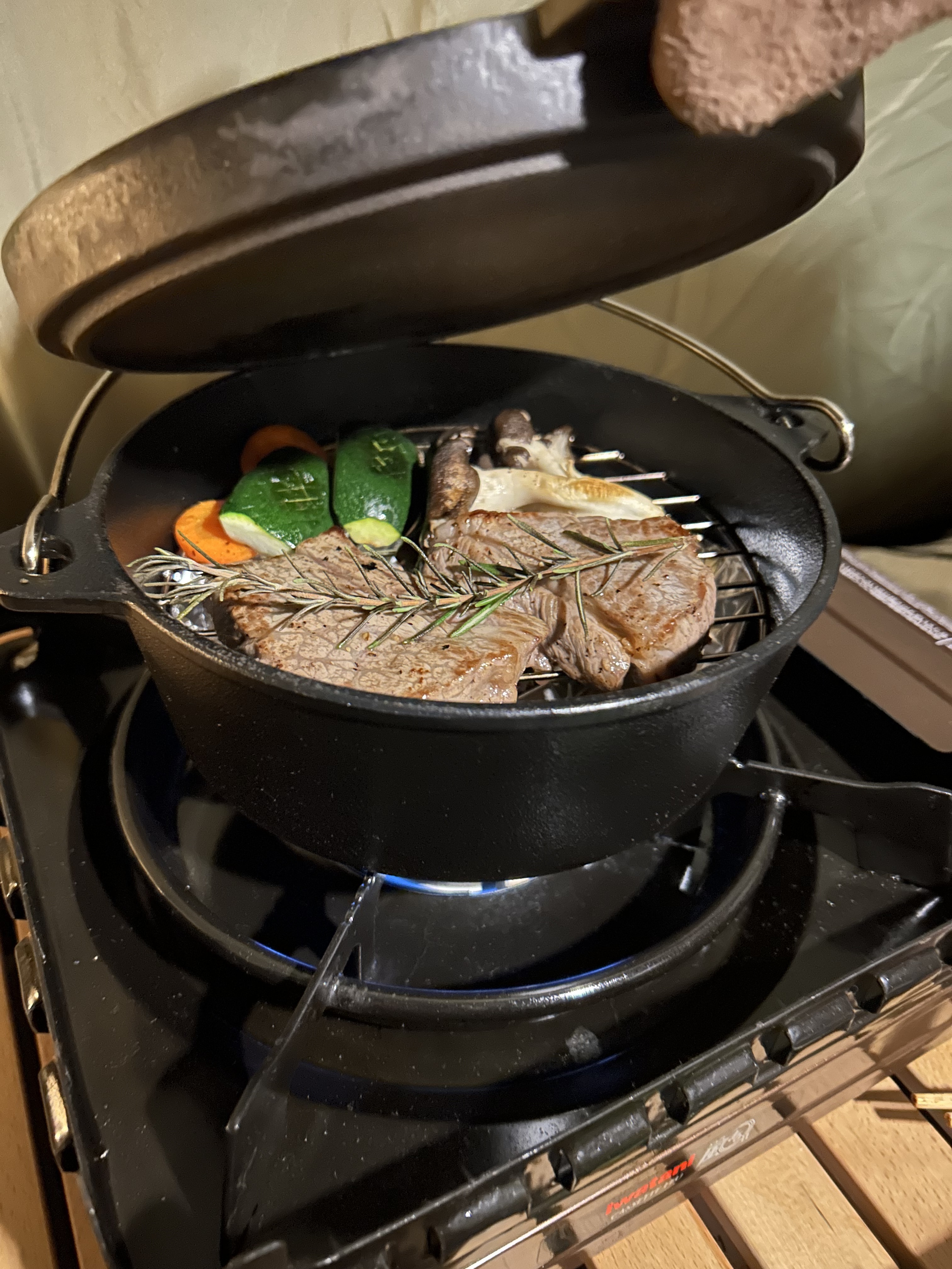 雨が降る前に夕飯の準備をして、少しだけ焚き火を楽しみ🔥