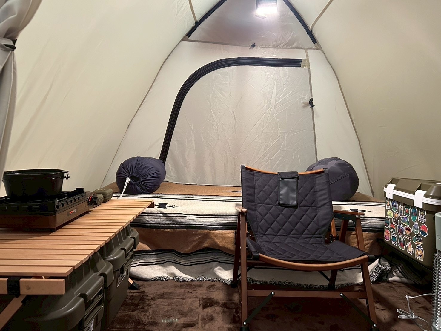 一緒に来ていた先輩のテントへお邪魔してお籠もりスタイルで晩酌を開始🍻