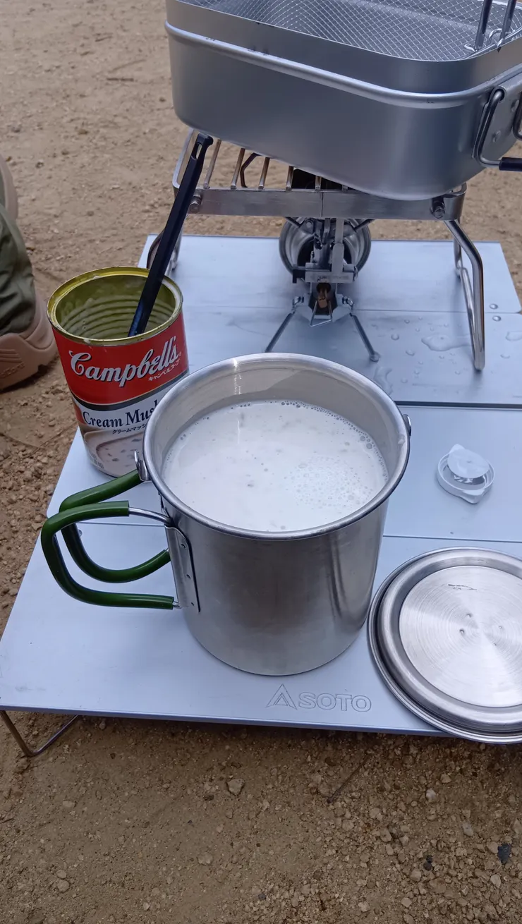 キャンベル缶と牛乳を鍋に空け、火にかける。