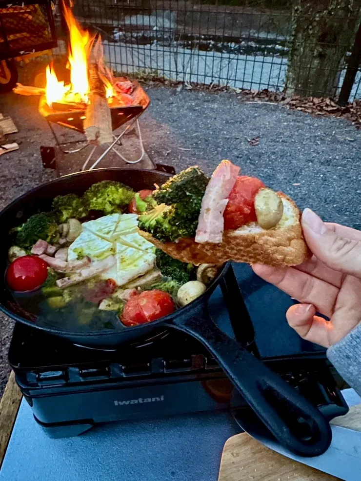 冬の名栗は空気が澄み、場内を流れる名栗川のせせらぎがやさしく耳に届く季節です。平日の場内は穏やかで、ソロキャンプやデュオキャンプで滞在される方が多く、焚き火を眺めたり、ゆっくりとキャンプ飯を楽しんだりと、それぞれが自分のペースで時間を過ごされています。