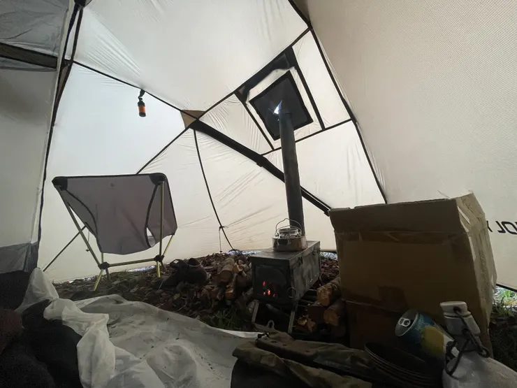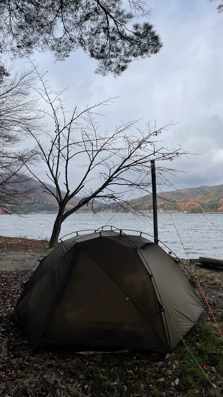 最高気温は風も吹いていたからか5℃。夜確認したら最低気温は-1℃。薪ストーブやダウンシェラフ使ってましたが寒いものは寒い。湖の反対側から迫ってくる雪霧も圧迫感あって・・・冬の、訪れね!!