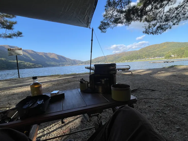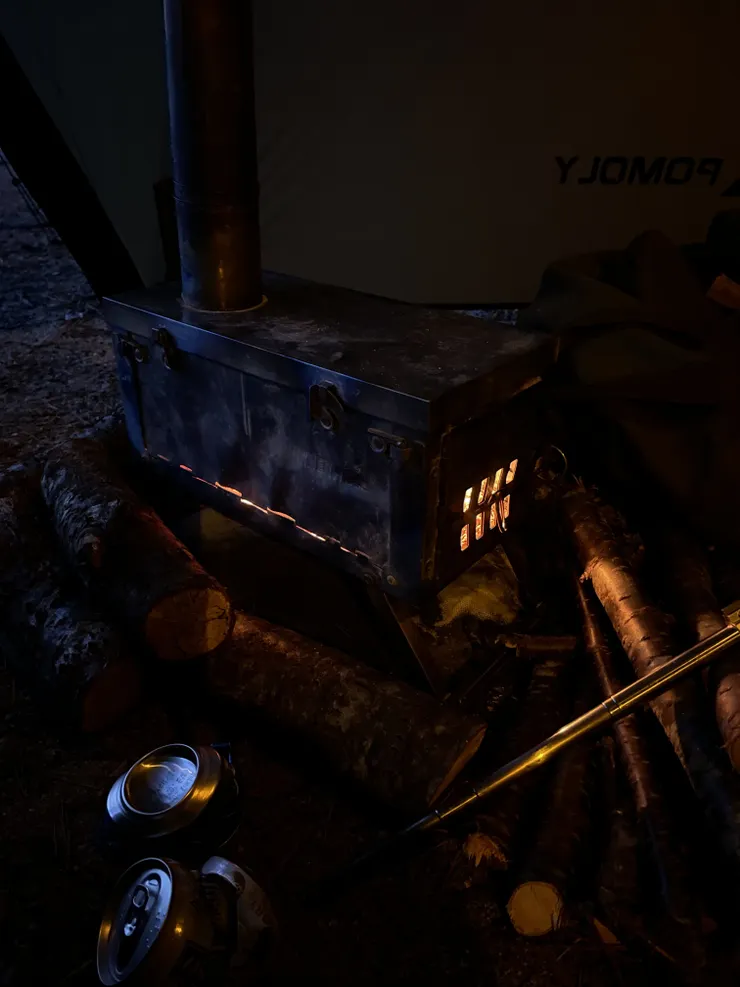 設営終わったらいつものハンバーガー食べてお酒飲んで仮眠とって寒くなったら薪ストーブ使って暖まってきて寝落ちして気がついたら朝!!しかも9時!!!圧倒的爆睡!!!!!
