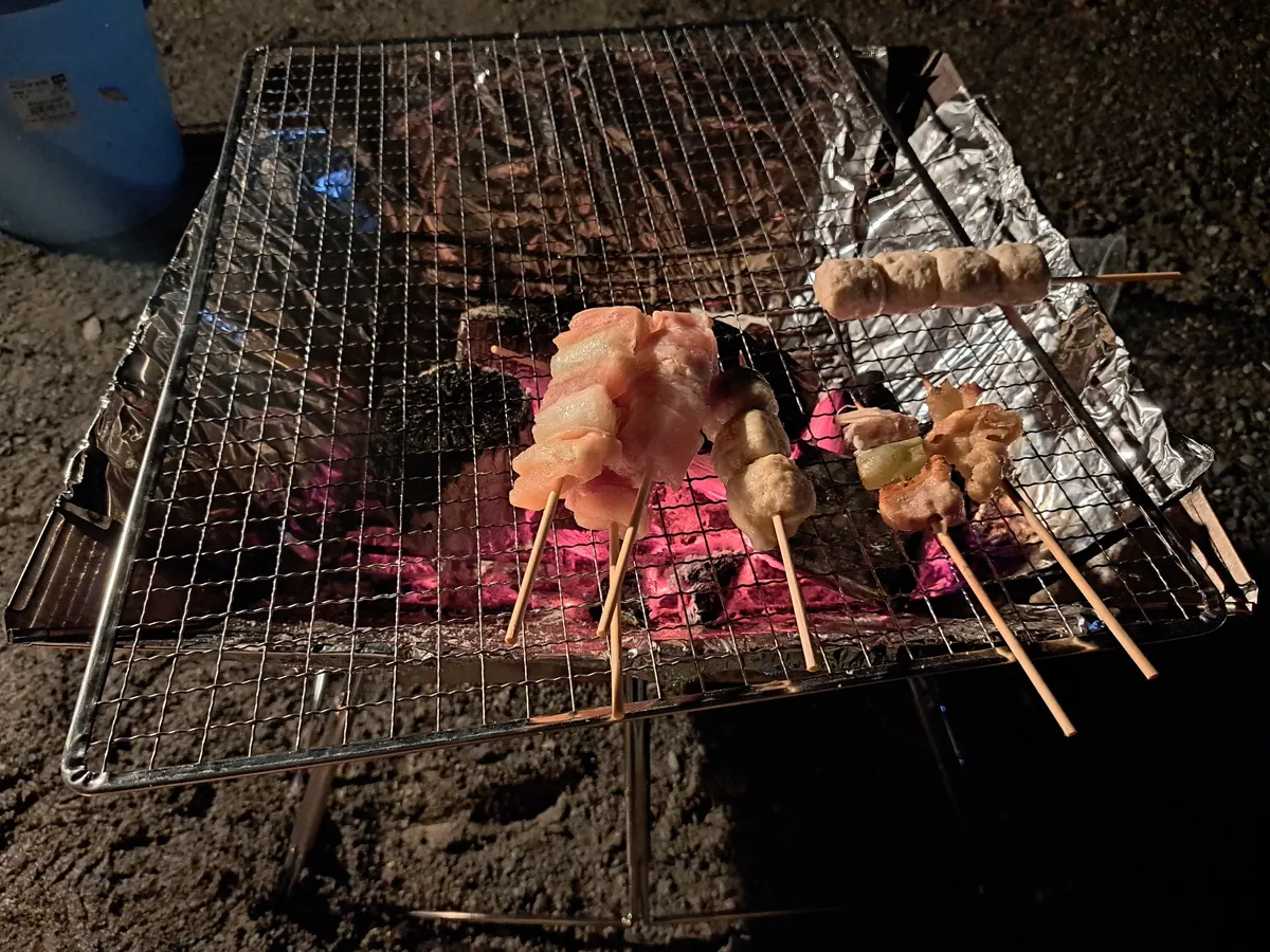 炭火を熾して焼き鳥も焼きます。