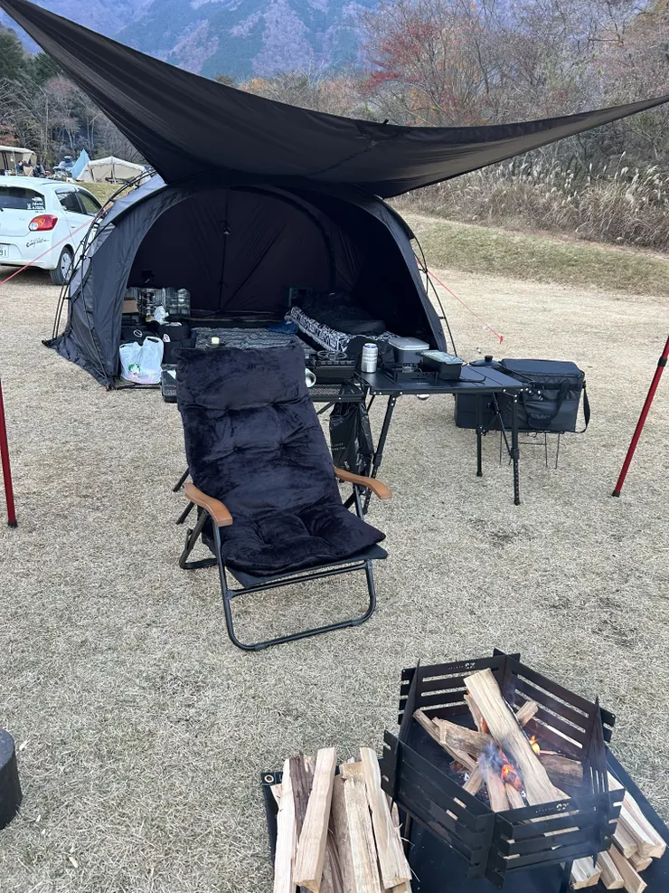 夜の気温が3℃深夜は2℃なので久しぶりに大型幕のGテントにパセコストーブ入れて電気毛布+湯たんぽの完全武装で