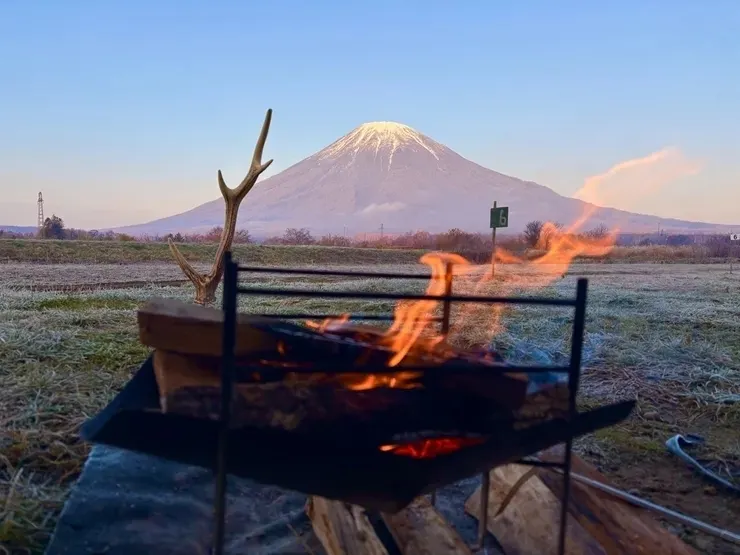 ・山頂が白んだ見事な蝦夷富士(羊蹄山の別名)と焚き火、秋キャンプならではの絶景が美しい投稿だと思いました。