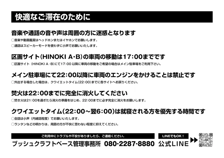 また、裏面にはよくある注意事項を「快適なご滞在のために」としてピックアップしましたので、併せてお読みいただけると幸いです。