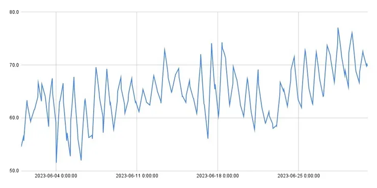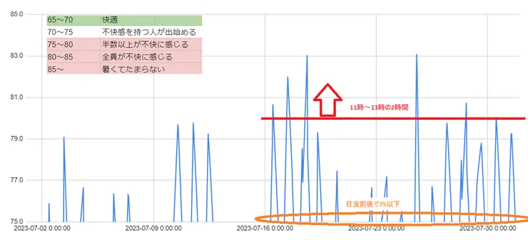 そこで、SUMIKAの去年のデータを基に不快指数を出してみました。