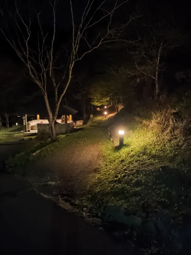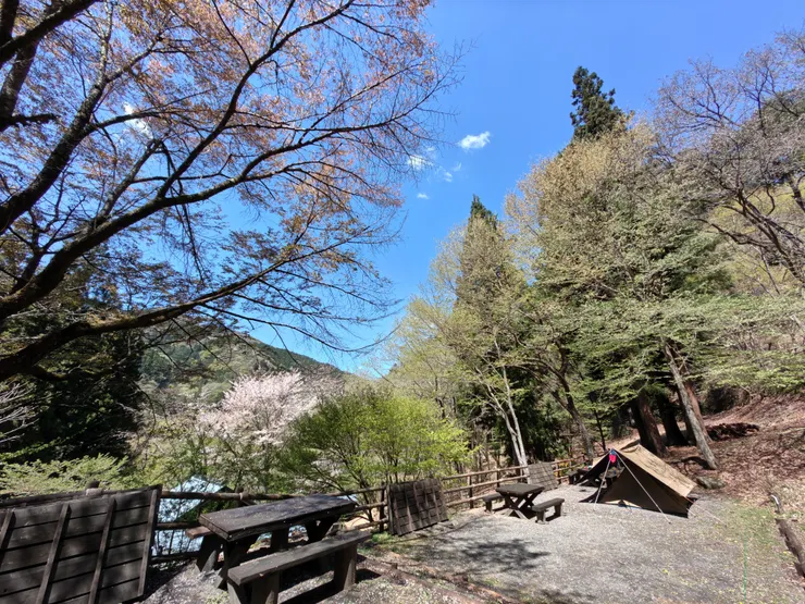 山の斜面を利用したキャンプ場なので、移動には少し苦労します。車やバイクがテントサイトまで来れるのは、荷物を降ろす時(チェックイン)と荷物を積む時(チェックアウト)の2回だけで、駐車場は離れています。駐車場までの移動には苦労しますが、その分、キャンプ場内は静かです。キャンプ場の近くには、コンビニやスーパーはないので、買い出しなどは、車で20分ぐらいかけて、奥多摩町まで行かなくてはなりません。