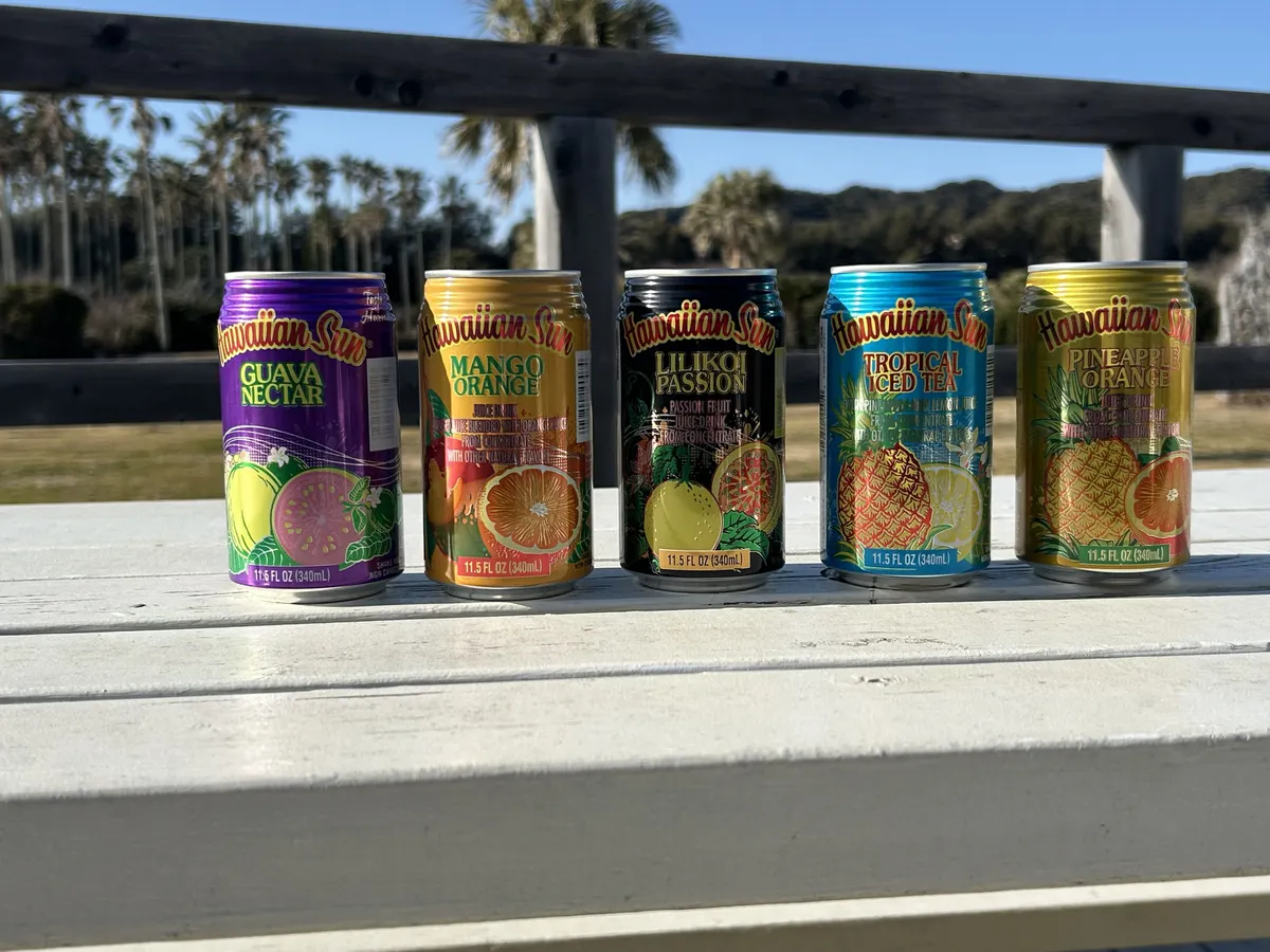 ③映えも抜群!輸入缶ドリンク:ハワイアンサンなど、キャンプの風景に彩りを添えるドリンクも充実しています 。