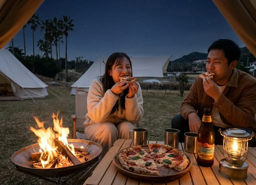 今回のメニュー刷新により、オペレーションが非常にシンプルになりました。 そのため、これまで17時までだった営業時間を延長し、夜間営業も実施予定です! 焚き火を囲みながら、キンキンに冷えたコナビールと熱々ピザ…なんて最高の夜はいかがでしょうか?