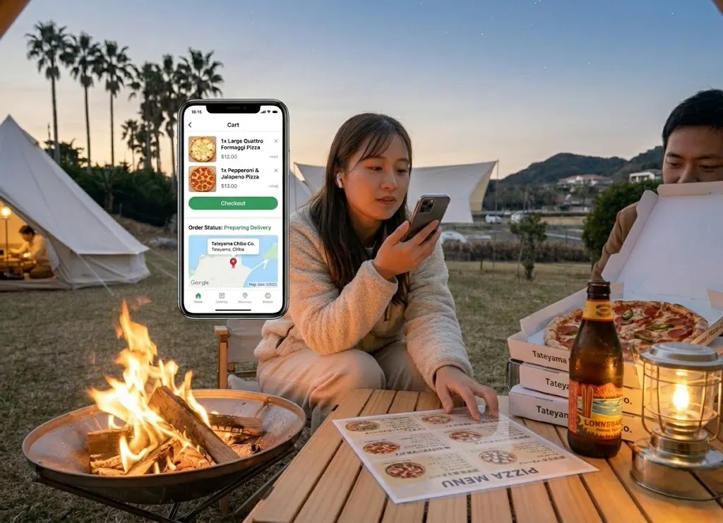 サイトから注文&決済:スマホひとつで、テントにいながら注文完了。事前決済なので、レジでのお会計も不要です 。