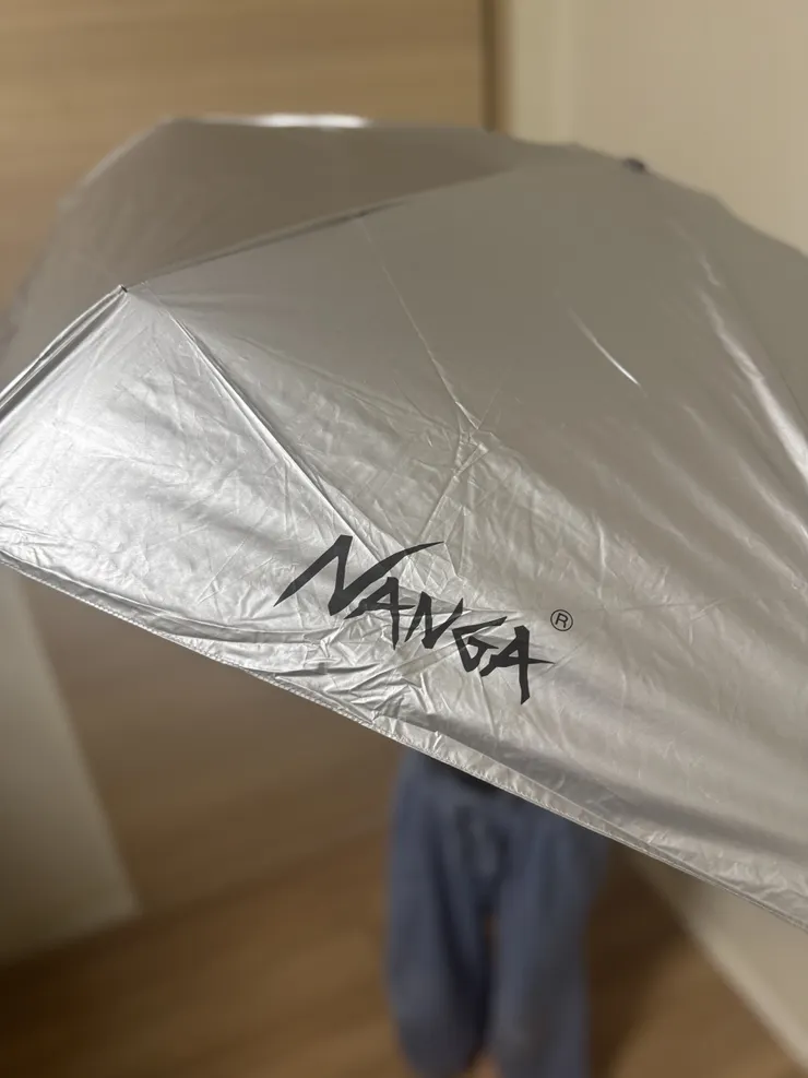 シュラフとは無関係だけど、ナンガのコンパクトアンブレラのシルバーがシンプルで好みだったのでこれに。