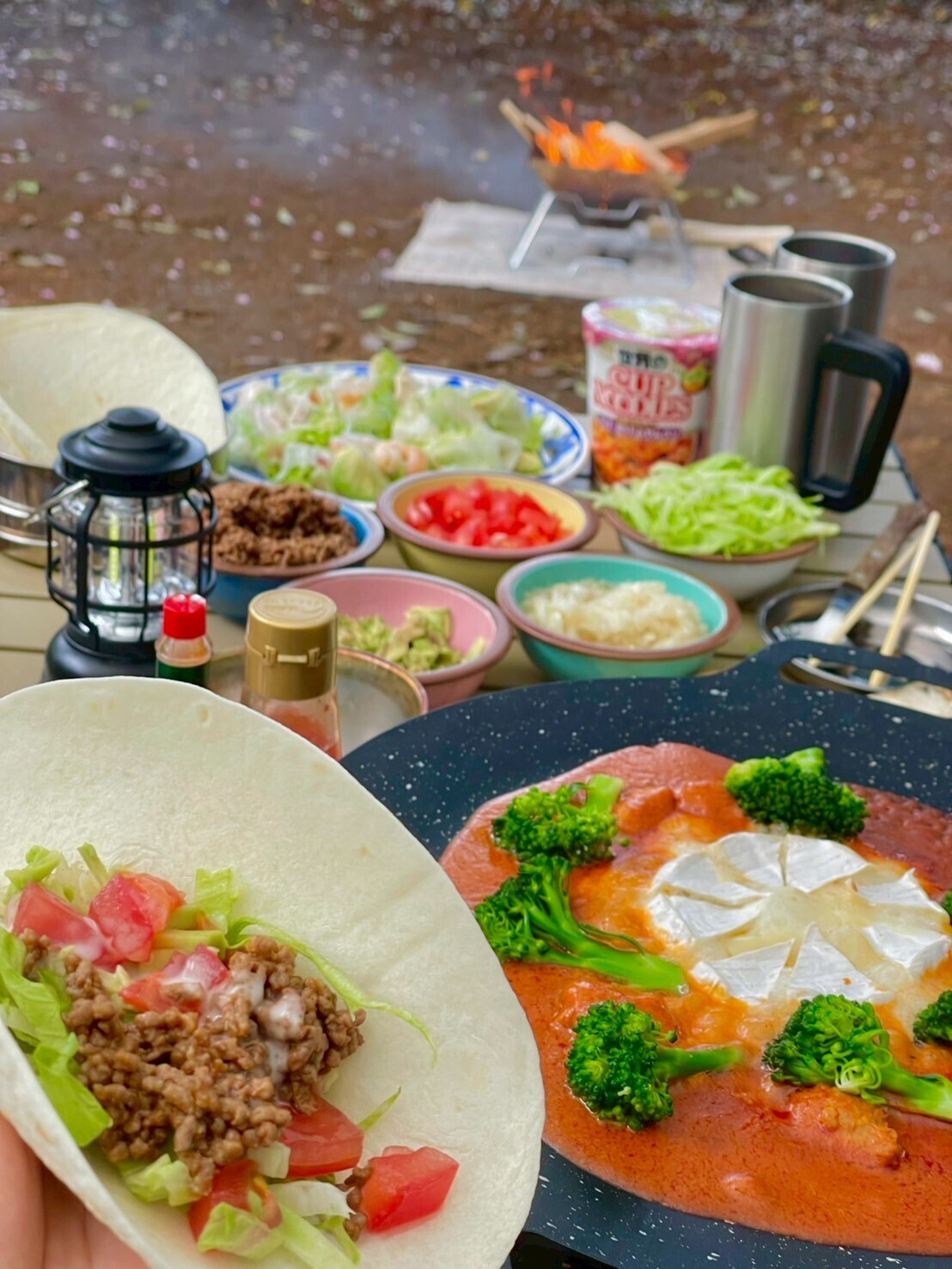 投稿を表示タコス・・・カオマンガイ・・・私のキャンプ飯で見ることの無い異国料理😳
