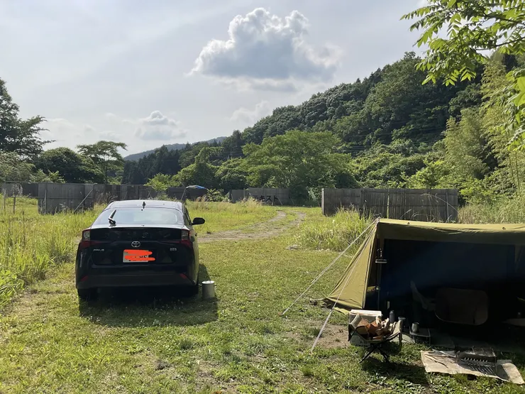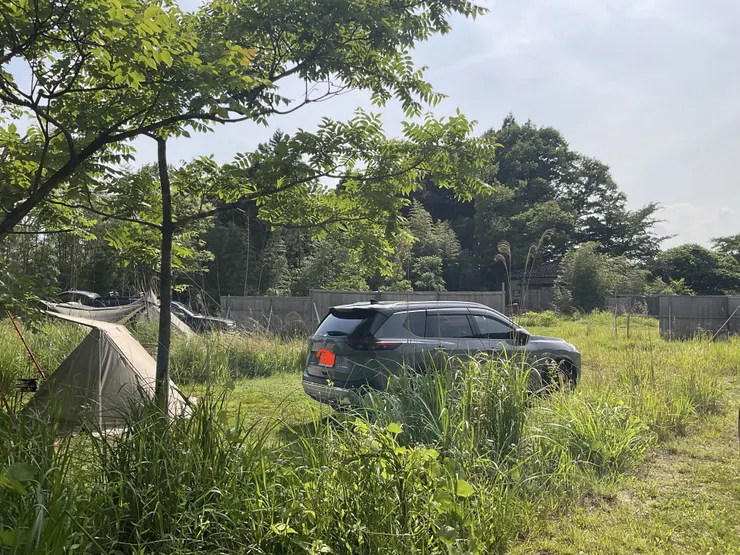 道は狭く普通車ではすれ違いできなそうな山林でした。入り口のハウスに管理人さんがいて丁寧に説明してくれました。場所決めは早い順で奥の松井田の夜景が見えるサイトはすでに埋まっていました。サイト全体はソロに十分なスペースが草や戸板で区切ってありプライベートは十分保たれました。民家から離れているので静かですが時折ジェットエンジンのような「ゴー」という騒音。自衛隊基地があるので航空機かと思いましたが麓を通る新幹線の安中榛名駅での停車発車の際の音のようでした。それ以外は自然豊かなサイトでした。