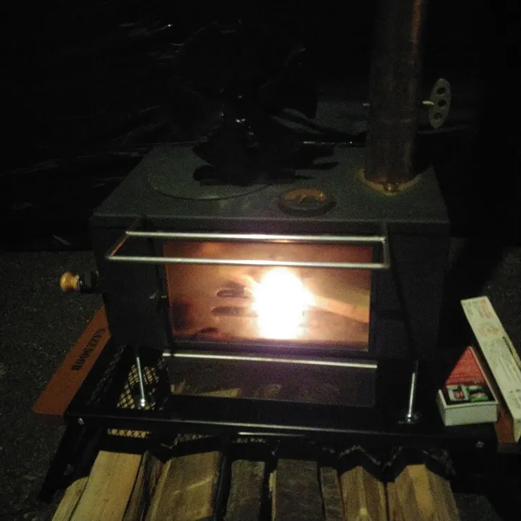 薪ストの下部に付いてるピザ釜でピザとフライドポテト焼きました〜
