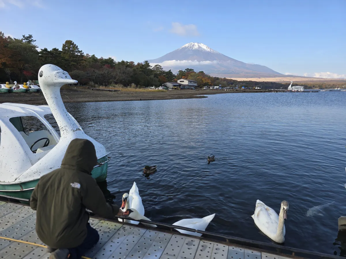 いつもの山中湖🦢白鳥への餌やりも忘れずにしてきました。