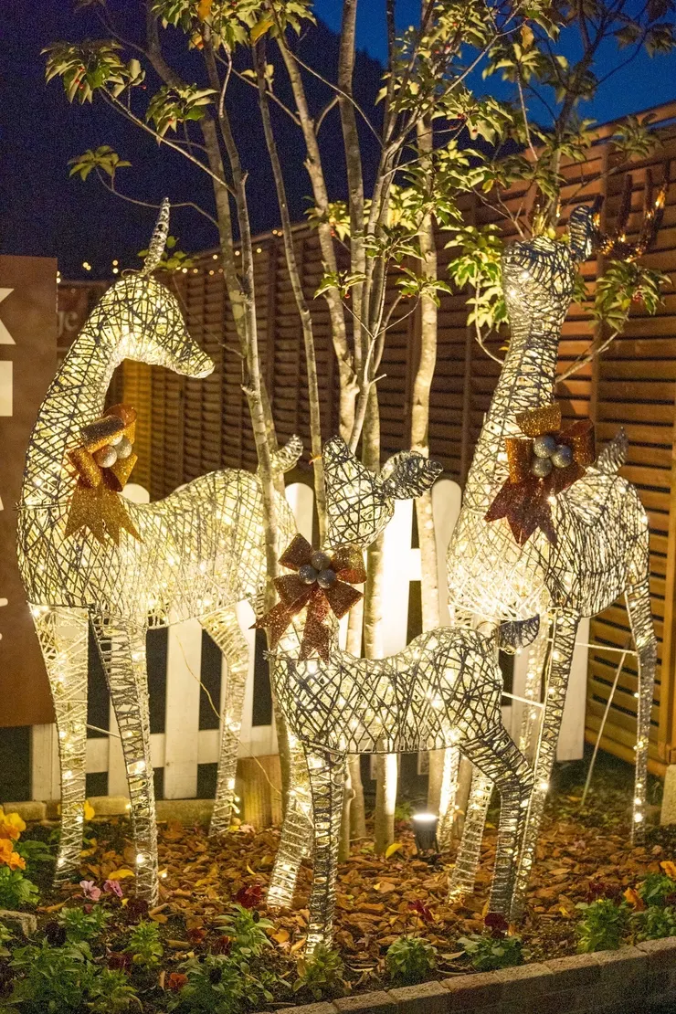 今年のクリスマスは、正面入り口で親子のトナカイたちが皆さまをお出迎え!