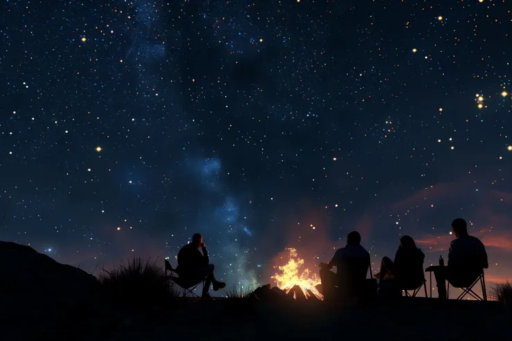 焚き火のぬくもりに包まれながら、家族で語らうひととき。