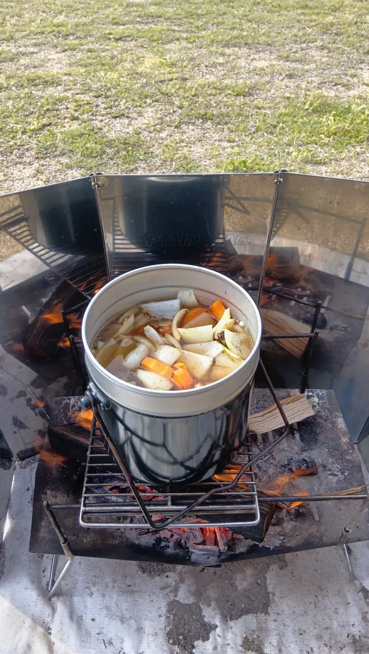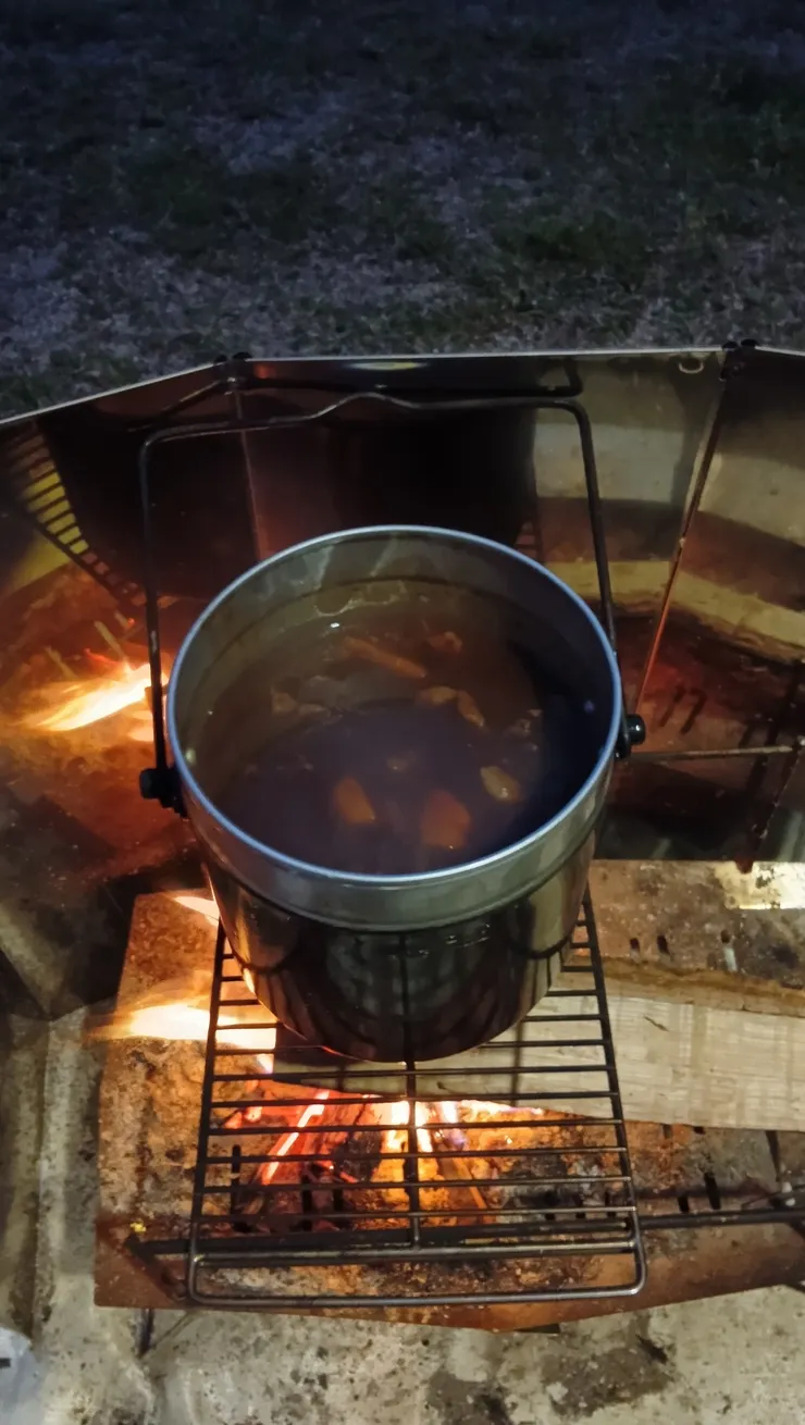 焚火で3時間しか煮込んでませんが、なんとかなるもんですねぇ。