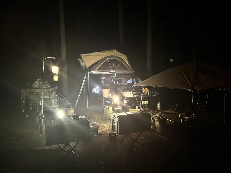 当日天気も文句なし❗️カーゴトレーラー牽引の駐車は手こずったけど、良き場所空いててなんとか画像のような感じで、一晩過ごしました。