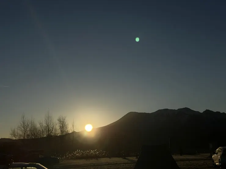 終始晴れていたため、帽子を被った(だいたい)南の御嶽(だいたい)東の乗鞍を見ることができ、御嶽から登る太陽も最高でした。