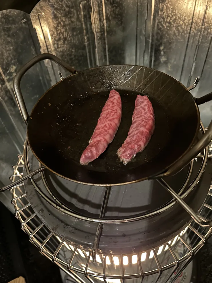 全ての食材をフライパン×ストーブで完結できる冬キャン良いですね✨