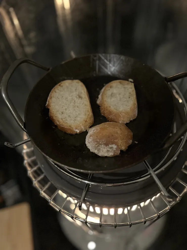 全ての食材をフライパン×ストーブで完結できる冬キャン良いですね✨