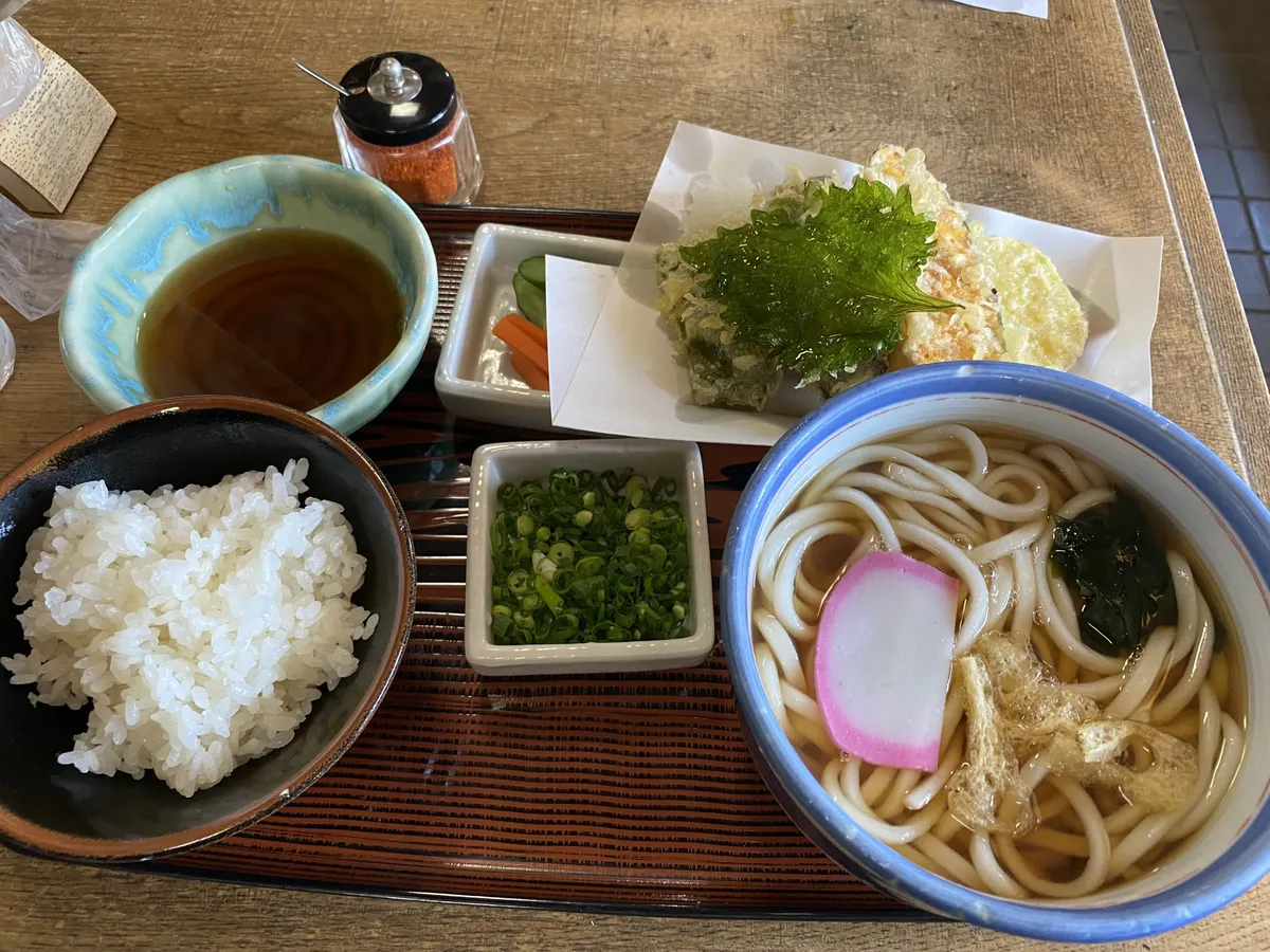 チェックアウトして、お昼ご飯はお気に入りの蕎麦屋さんのうどん定食をいただきました。