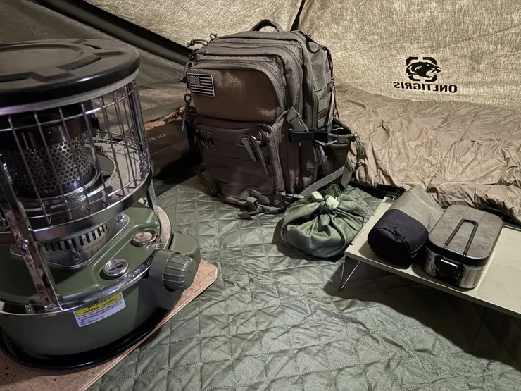 グランドシート、インナーシート、フォールディングマット、エアピロー、シュラフ、ローテーブル、バックパック、メスティン、カトラリーケース、ブランケット、クーラーボックス、鉄鍋用風呂敷、ノコギリ(シャークソー)、タオル、石油ストーブ(パセコ)、オイルランタン、ホーローマグカップ、保冷缶ホルダー、ガイロープ、モーラナイフ、箸、革手袋、ローチェアー、焚き火シート、薪バック、調味料ケース、ギアボックスなど?数えきれません♪