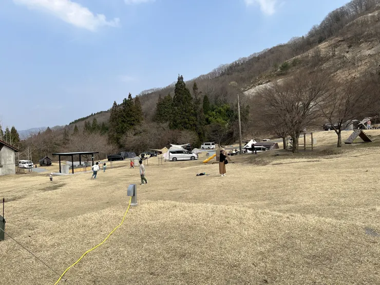 絶好の晴天に恵まれての2026シーズンスタート。標高も高すぎず、寒ければ無料の大浴場や車で2分の温泉(しかも大人¥400)がありAC電源まであるから安心。元スキー場のメインゲレンデを囲うようにサイト整備されていて、中央に子供の遊具があるので子供も安心して遊んでいるのを見ていられる、また雨の日も元ゲレンデステージの広々としたスペースで遊べるし、センターハウス内に子供の遊び場もあるので天候不良でも過ごせます。芝生のサイトで平らに整備されているのでサイトの設置も居心地も良いです。今回もゆっくり満喫できました。