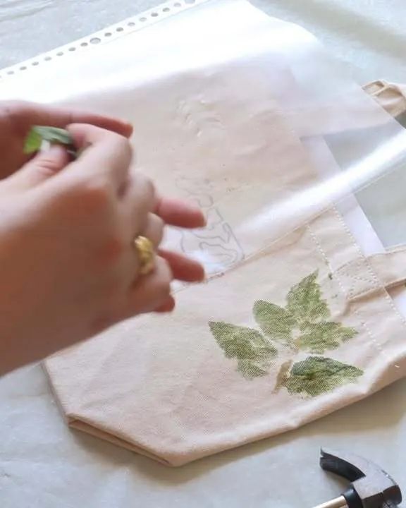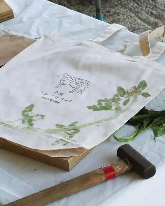 採ってきた植物の色や形を写し、世界にひとつだけのトートバッグ作りをします!
