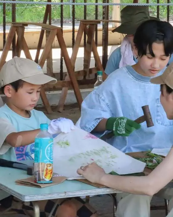 #あそんでのびる部 植物ハントとたたき染め🌷
