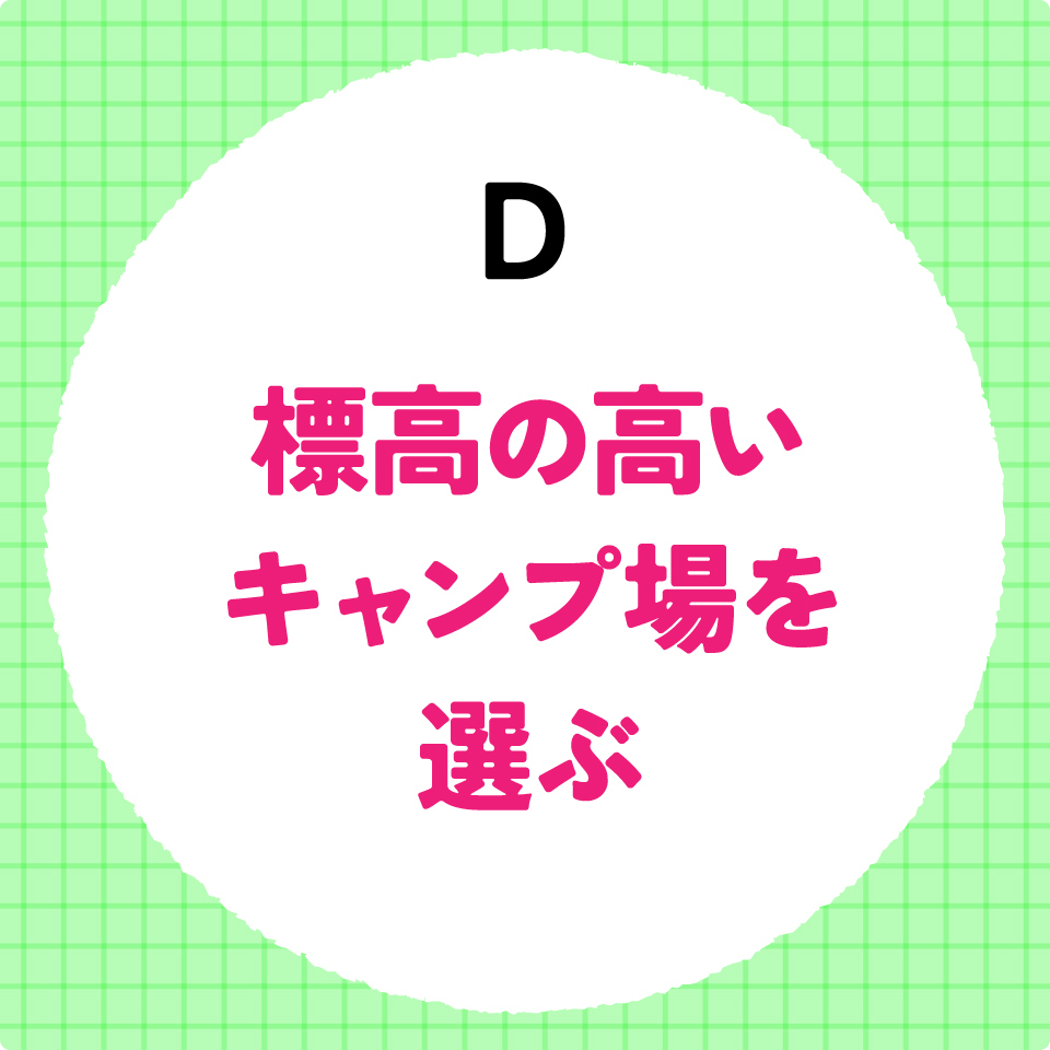 次に人気だったのが、Dの「標高の高いキャンプ場を選ぶ」が続きました。