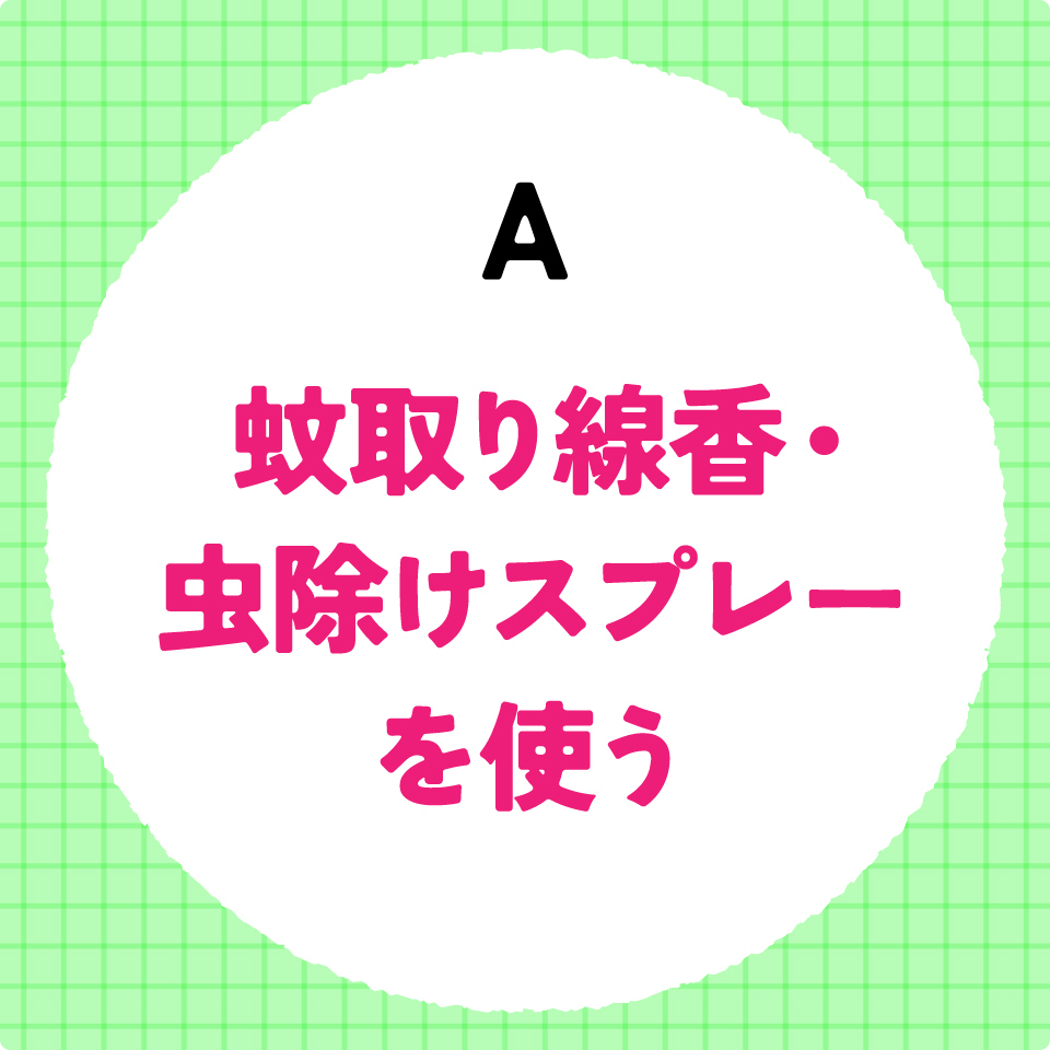 最も多く投票いただいたのは、Aの「蚊取り線香・虫除けスプレーを使う」でした!