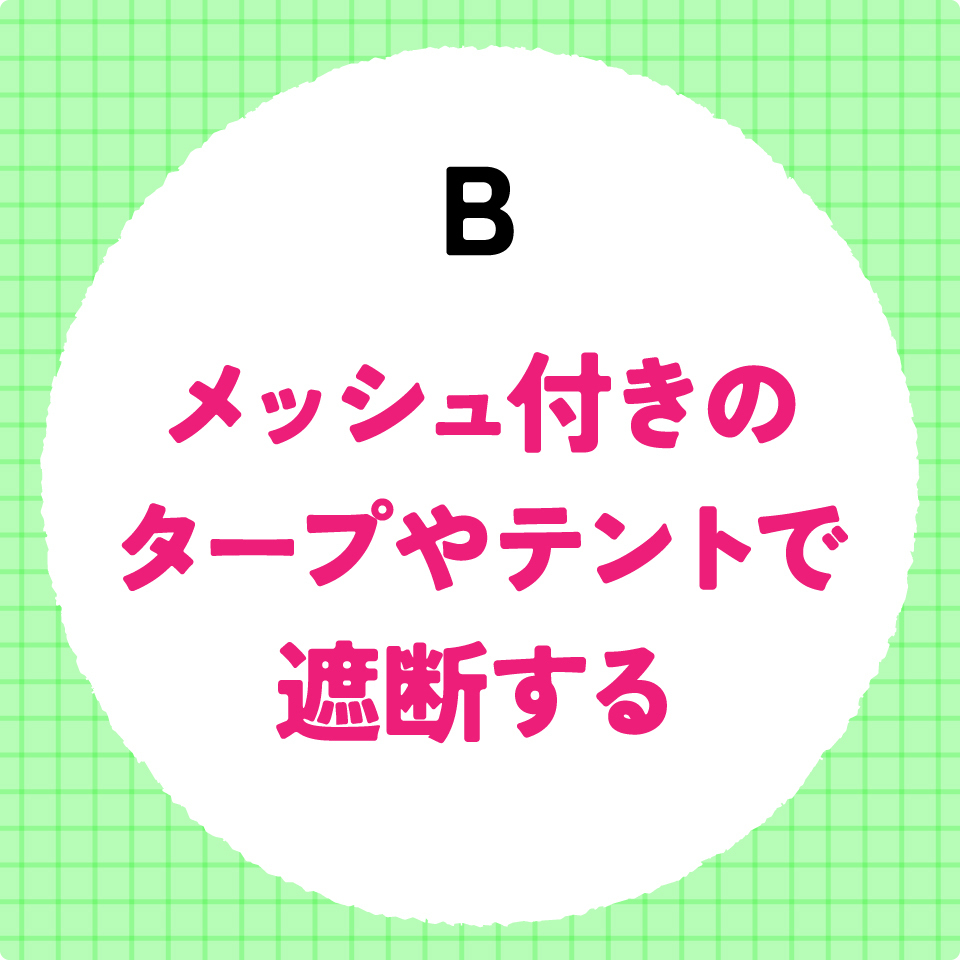 Bの「メッシュ付きのタープやテントで遮断する」というのも物理的に虫を寄せつけない対策でしたが投票率が低い結果に。