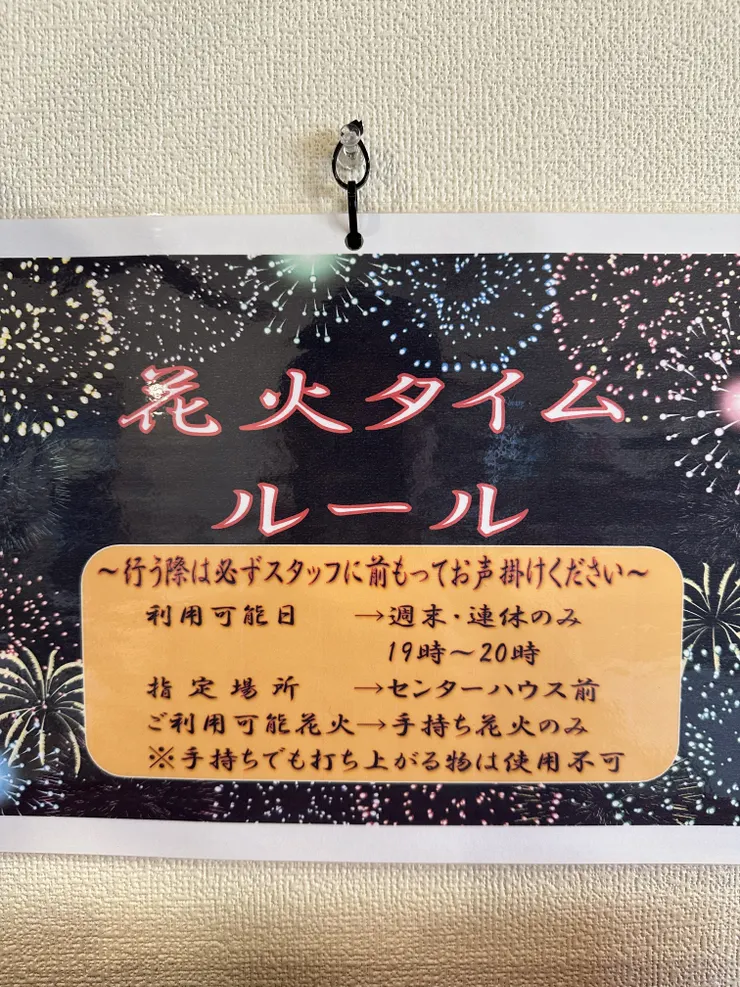 ※花火をする際は受付時など前もってスタッフにお声掛けください。