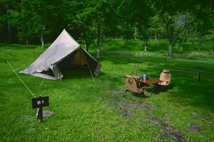 RECAMP別府志高湖にある、唯一の区画サイトであるBサイトを、