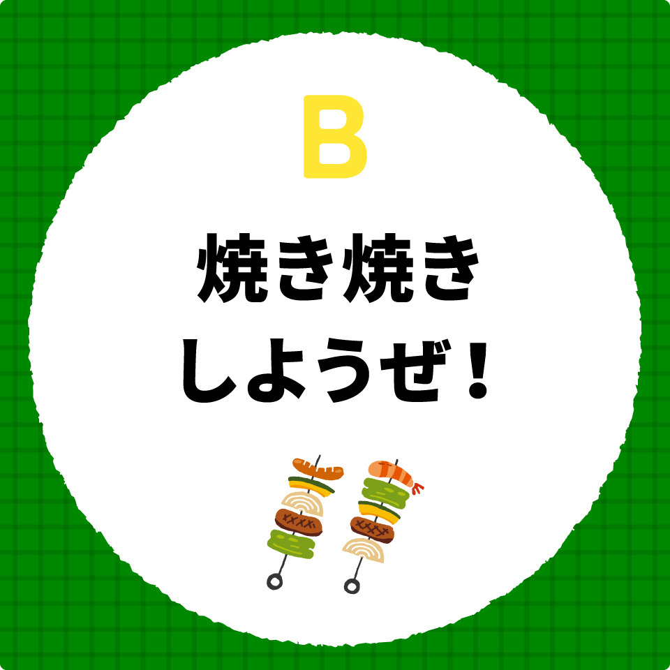 最も多かったのはBの「焼き焼きしようぜ!」でした。他を圧倒する60%!