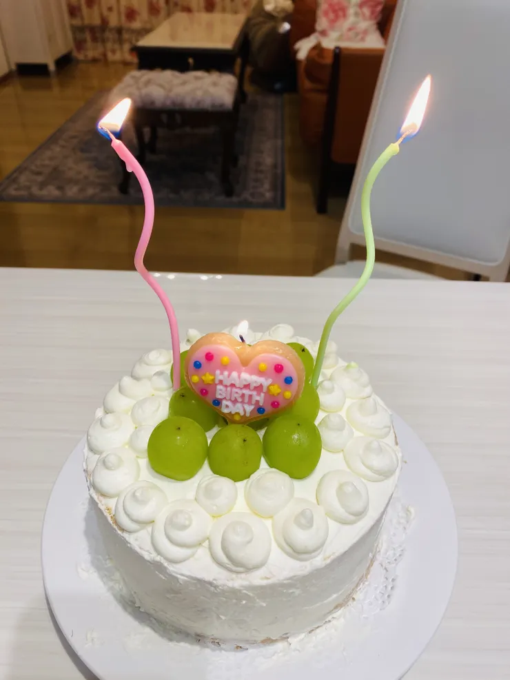 ケーキの写真は旦那のバースデーケーキです😂シャインマスカット大好きなので作ってみました🍰てへっ❣️