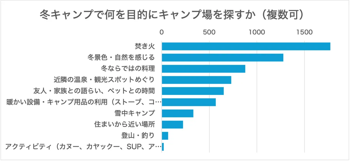 みんなが冬のキャンプ場で何をしたいのか、その目的をランキング形式で見てみましょう。