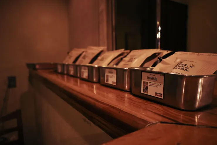 ここのコーヒー体験はとってもユニーク!「BE YOUR OWN BARISTA(あなた自身がバリスタ)」というスタイルで、パウチにお湯を注ぐだけで本格的なドリップが楽しめます。