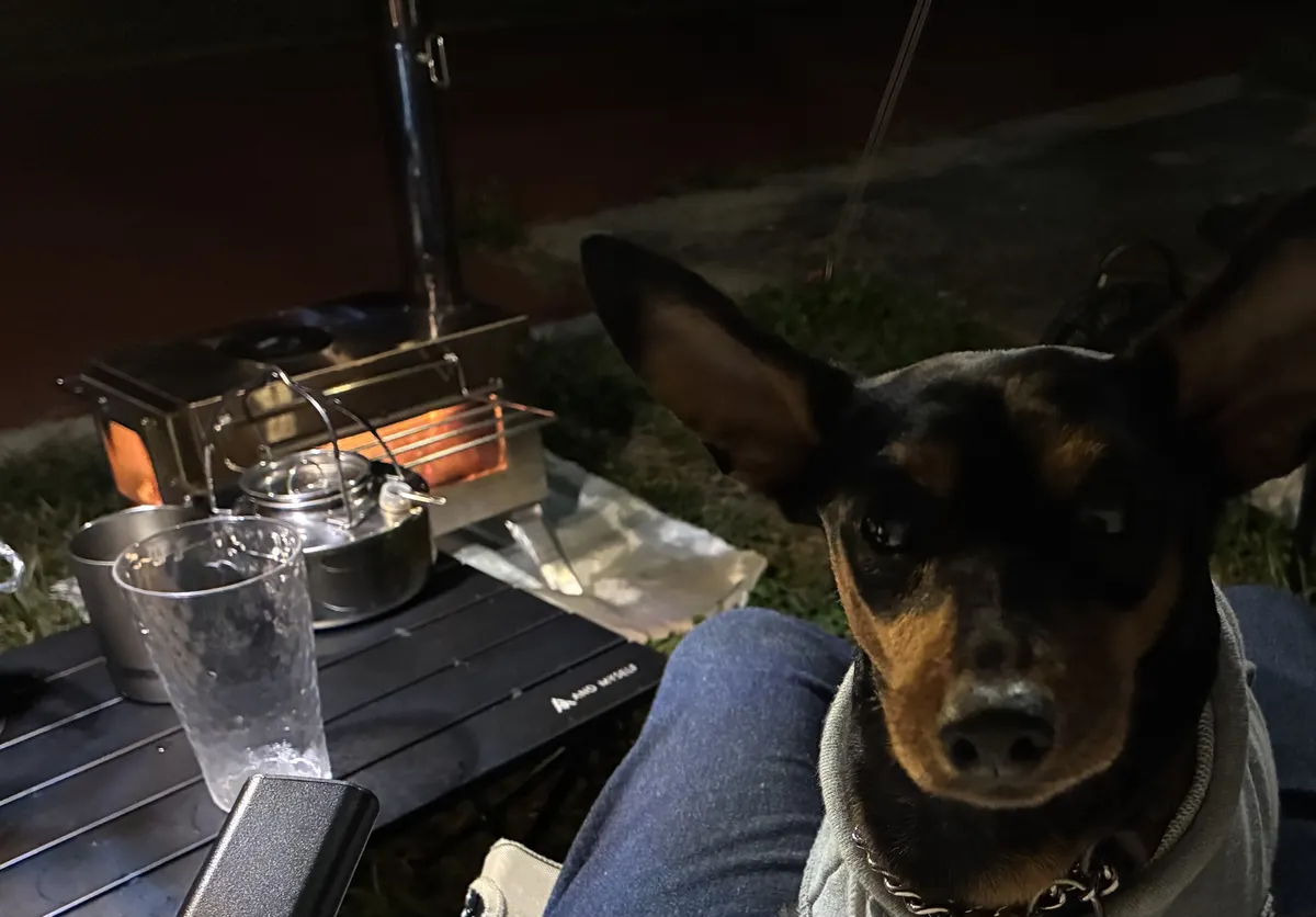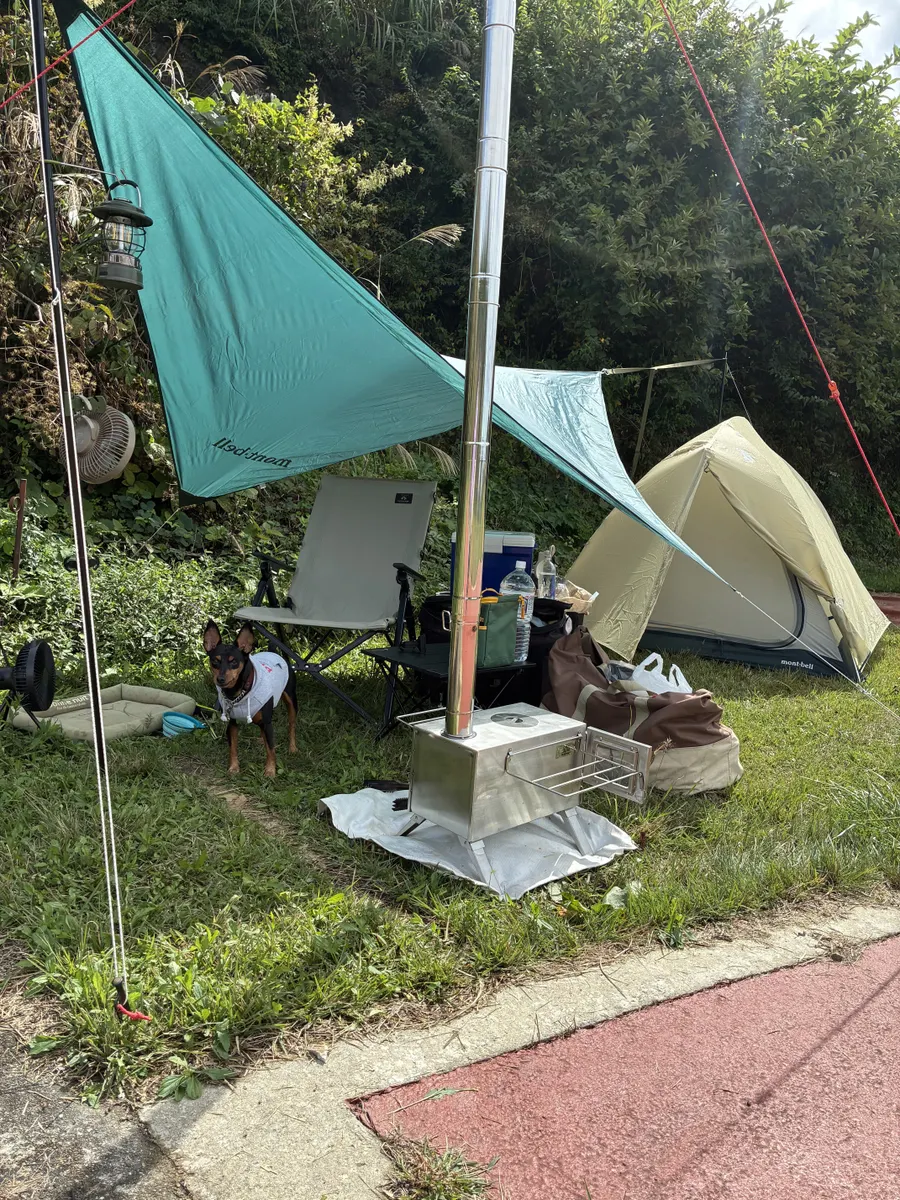 焚き火禁止なので薪ストーブを焼入れ匂い飛ばしついでに初使用(炭とガスコンロは指定区域でok)