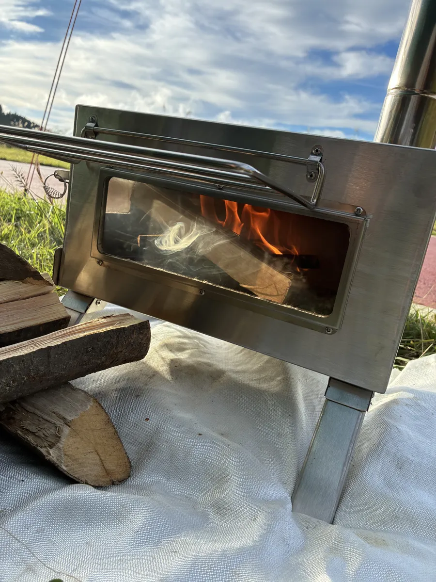 2窓のタイプ、少し大きめに割った薪を1本づつ熾火になる直前くらいに追加投入すれば良い感じかも?気温と相談かな?