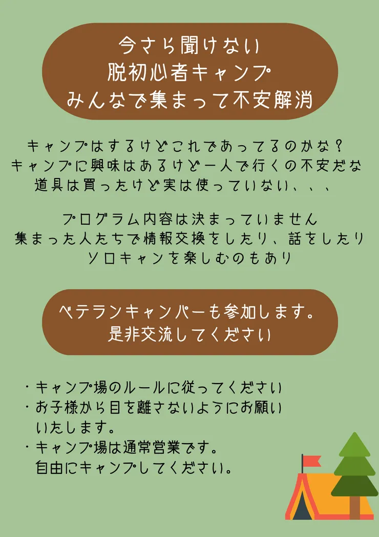 初心者キャンパーや久しぶりキャンパーさん大歓迎です。