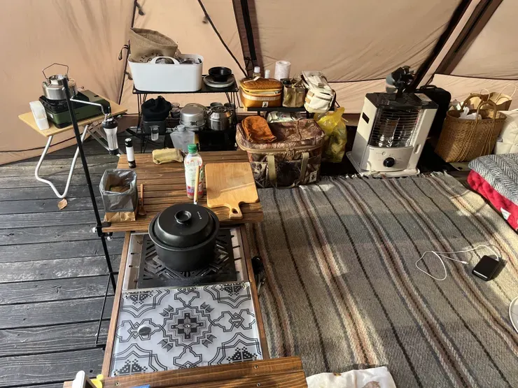手ぶらプランは、ストーブ完備、寝袋ダウン、焚き火台他レンタル込み。冬でも気軽に過ごせそうです。冬キャンプが苦手な方や、ストーブ利用に興味がある方は利用してみてはいかが!?